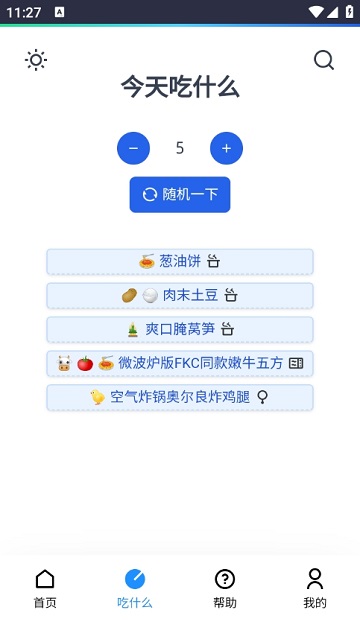 2、随机选择,帮用户解决选择的困难,随机生成全新的食谱,带来灵感。