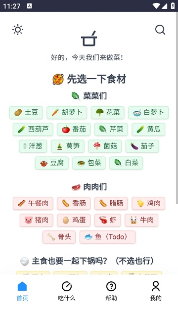 1、根据对食材和厨具的选择,不同的搭配会推荐相应的食谱,来确定菜肴。