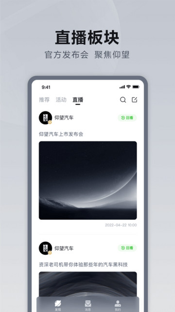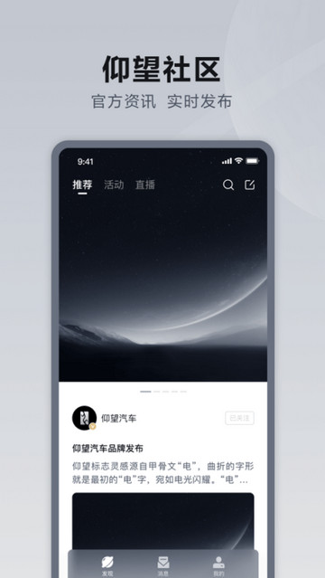 仰望汽车是一款非常好用的汽车服务软件,它不仅为用户提供了线上看车功能,用户还能通过软件预约试驾服务,更为用户提供了车友圈功能,用户们可以在这里分享自己的购车经验和驾驶体验等,非常的有趣。感兴趣的小伙伴快来本站下载体验吧。