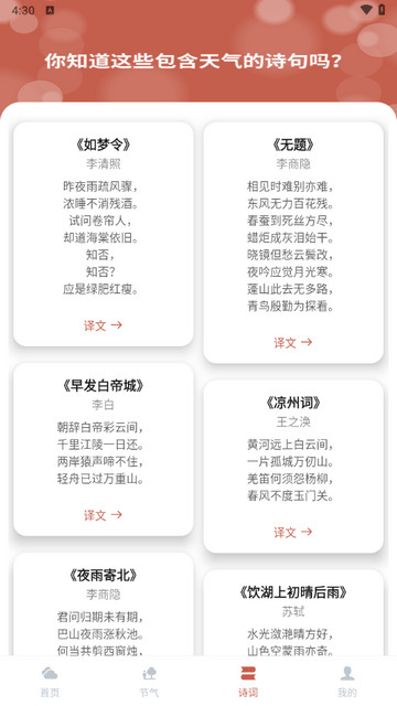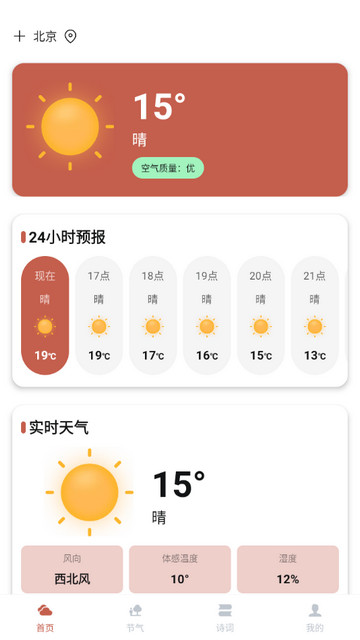 荷叶天气app是一款有着精准预报的天气软件,这里提供二十四小时实时天气,什么时候下雨,什么时候变天都能在这里清楚的观看到,还有十五天的天气,让用户能更好的规划出行情况,首页布局简洁明了,打开即可清楚的观看的天气情况。