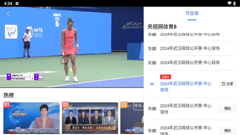 3、点击节目就可以进入观看,另外在节目单中还提供了节目播出时间,所以大家可以非常方便的看电视;