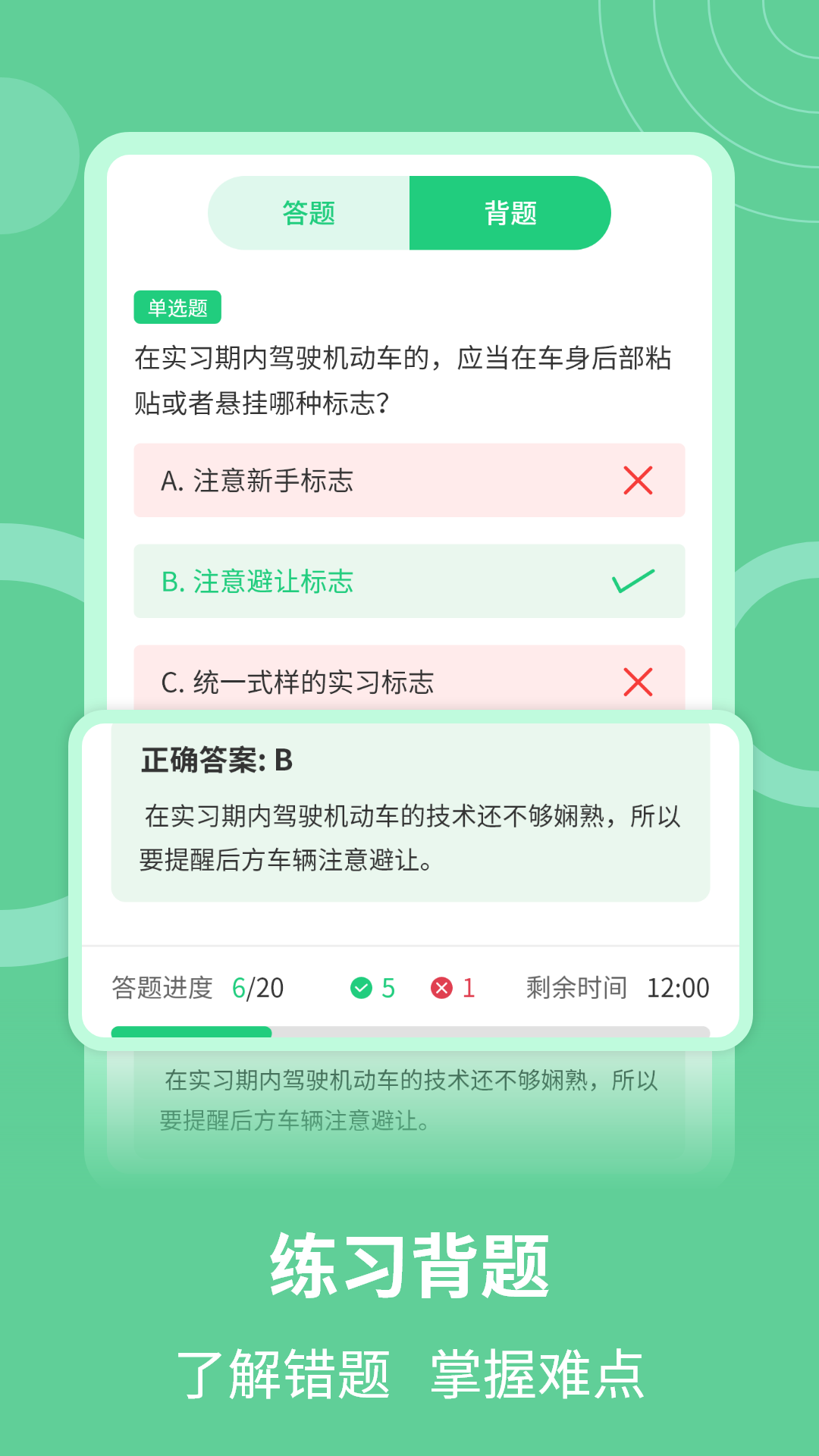 4、顺序练习:基于新的学习方法,降分考试大纲涵盖轿车、公交车、卡车、摩托车,各地区题库实时更新。
