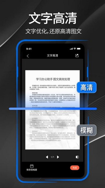 3、高清阅读:通过背景净化处理后,用户可获得清晰的文档,轻松翻阅。
