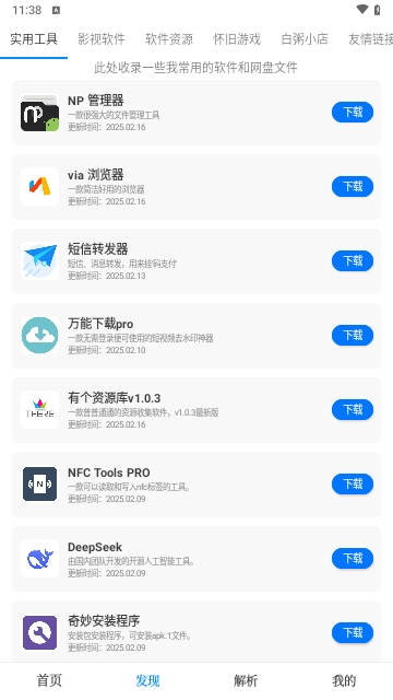 有个资源库APP是专为安卓用户所全新推出的一个软件资源库工具,因为是刚出的,所有软件资源并不是很多,但是后续还会陆续更新的,包含的软件资源种类非常的丰富,类型多样,而且还提供了详细的分类,大家可以自由来这里选择下载。