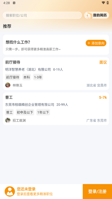 3、平台提供了多种搜索方式,用户可以通过关键词、行业、城市等信息快速找到感兴趣的职位。