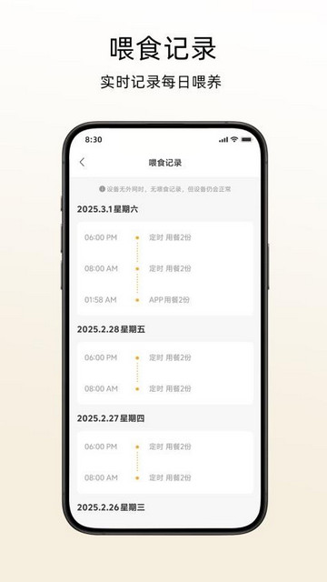 会实时记录宠物的每日喂养情况,进而可以查看历史喂食记录,便捷的掌握。