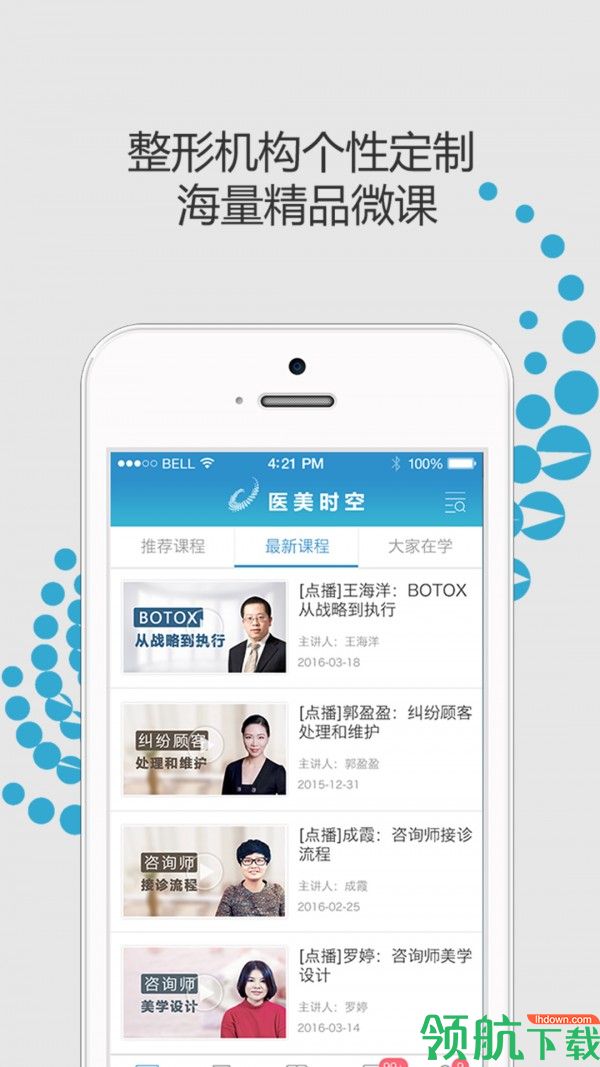 在这里聚集了近百名医美行业专家,通过“医美时空”,您不仅可以随时随地学习医美行业各领域专业课程,课程涵盖了整形外科,皮肤与激光,注射与微整、咨询与服务、营销与运营、领导与管理等六大专业领域,还可以个性化定制移动学习解决方案