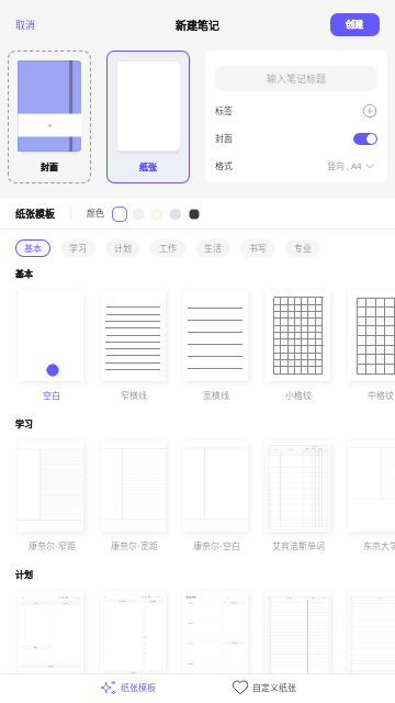 纸张模板:丰富的纸张模板,康奈尔笔记法、麦肯锡笔记法、东京大学笔记法、SQ3R学习法等等模板,随意搭配,让学习和工作更加高效。