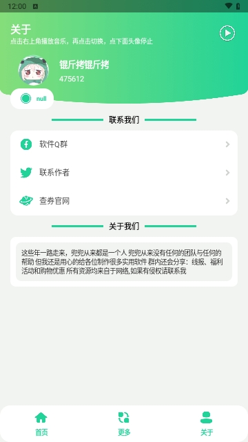 咕咕音乐APP中为大家提供的相关手机音乐播放服务是非常可靠的,实用性是非常不错的,而且全都是无损音质播放收听到,不需要花费一分钱就可以享受到一个优质的听觉感受,而且还支持歌词显示,此外软件还内置了许多应用资源可以免费下载到!