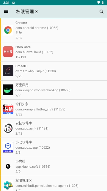 2、接着,在权限管理X的界面上,你会看到你设备上已安装的所有软件列表。你可以通过点击这些软件来进一步查看和管理它们的权限。