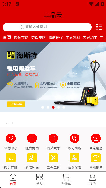 工品云app里面有着种类众多的工业品任你随时在线查案、任意选购,而且还提供了搜索栏,让你可以轻松、便捷查找自己需要的工业品并快速采购,提高采购效率;同时,软件里面有着很多的红包、优惠券资源,让你可轻松实现省钱采购。感兴趣的快来本站进行下载体验吧。
