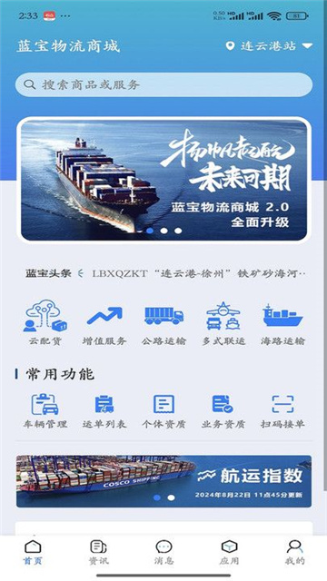 一款提供专业物流服务的手机软件,让用户不仅可以在软件中找到最为靠谱合适的物流运输车队,凭借其多样化的物流方案、全流程可视化管理、智能化运作以及供应链金融服务,为物流行业带来了全新的解决方案,实现信息技术与多式联运业务紧密结合,使得港口物流运输生态环境能够更加全面地智能共享融合。