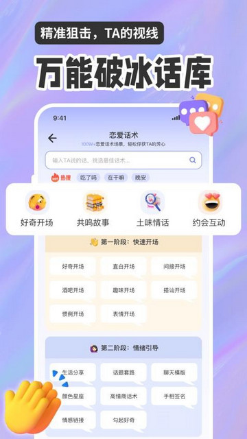 2、帮助单身狗用户使用谈情说爱的技巧吸引女神或男神。