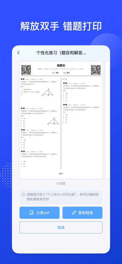 旨在为用户提供便捷的错题采集、错题整理、个性练习推荐等学习服务。