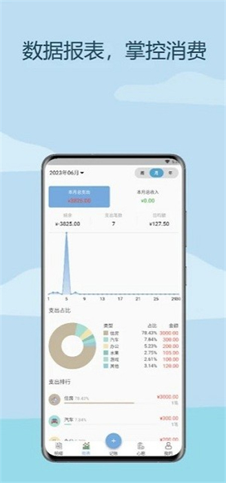 2.每周每月都有详细的报告,看起来一目了然,就能了解到具体的费用花在哪里了。
