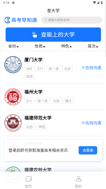 看大学历史、看大学性质、看特色专业、看重点学科、看招生类别等等,涵盖招生录取,招生计划、学校介绍、专业录取分查询等等丰富内容!