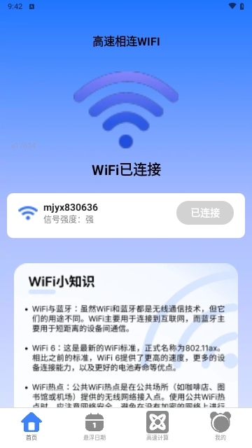 高速相连WiFi这是一款拥有专业网络WIFI连接和综合控制管理功能服务的应用软件,在这里能够随时查看当前WIFI网络的连接列表情况,帮助用户更好进行网络信号检测以及网络测速,轻松即可了解当前网络具体状态,让大家管理手机WIFI网络更加方便。