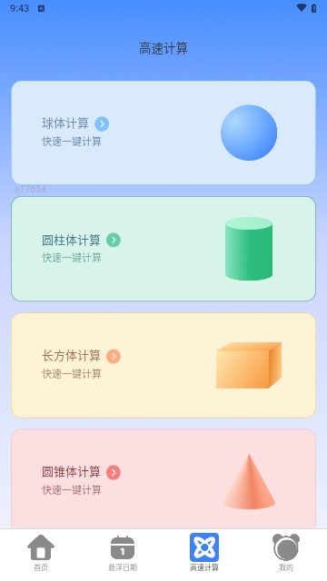 支持多种几何体的计算功能,快速准确地完成球体、圆柱体、长方体和圆锥体等的计算,让您的学习工作事半功倍,无需再费力查找公式。