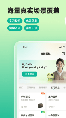 智蛙面试,专为实习校招、求职就业、雅思口语、留学签证等重要场景设计,提供专业有效的面试提升服务。