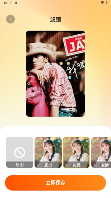 根据照片的风格可自行选择对应的美颜滤镜添加,并能完美嵌合到图片当中;