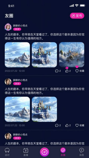 3、翻看诸多精彩有趣的动态,并能直接在线点赞收藏和发表评论;