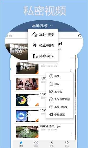 1.私有视频:私有视频已加密,无法播放其他播放软件,私人视频保存在本地,真正私密。
