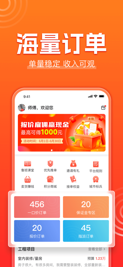 1、就近派单:众多周边优质订单系统实时智能推送,确保每位师傅都能匹配高质量订单。