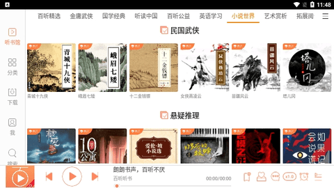 百听听书HD中覆盖了超多不同类型小说书籍有声资源,超多有声资源任你挑选找到,类型也是十分的丰富多样,你想看什么都可以在这里找到,免费听书,超多正版有声小说分享给大家,你还可以下载起来离线收听播放,喜欢听小说的用户快来下载吧!
