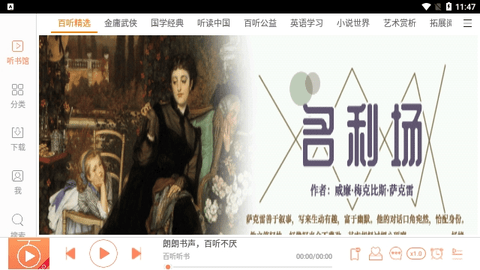 囊括武侠,国学经典,散文各类作品;普通话,英语,粤语应有尽有;朗读版,广播剧版,评书版听你想听。