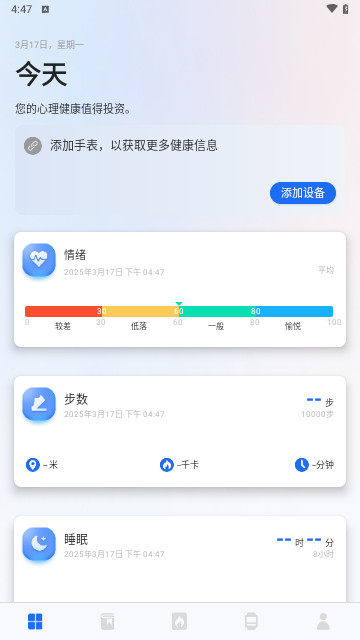 4、睡眠监测:能够记录睡眠时长及睡眠质量,改善用户睡眠。