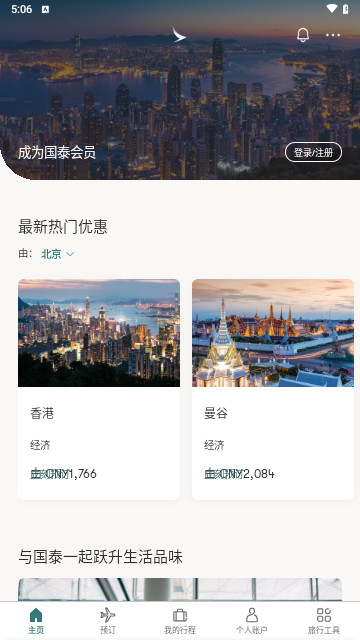 4、预订变得轻松,只需要直接使用手机应用程序,您便可轻松地预订国泰航空航班,前往超过 190 个目的地,并专享手机应用程序带来的优惠。