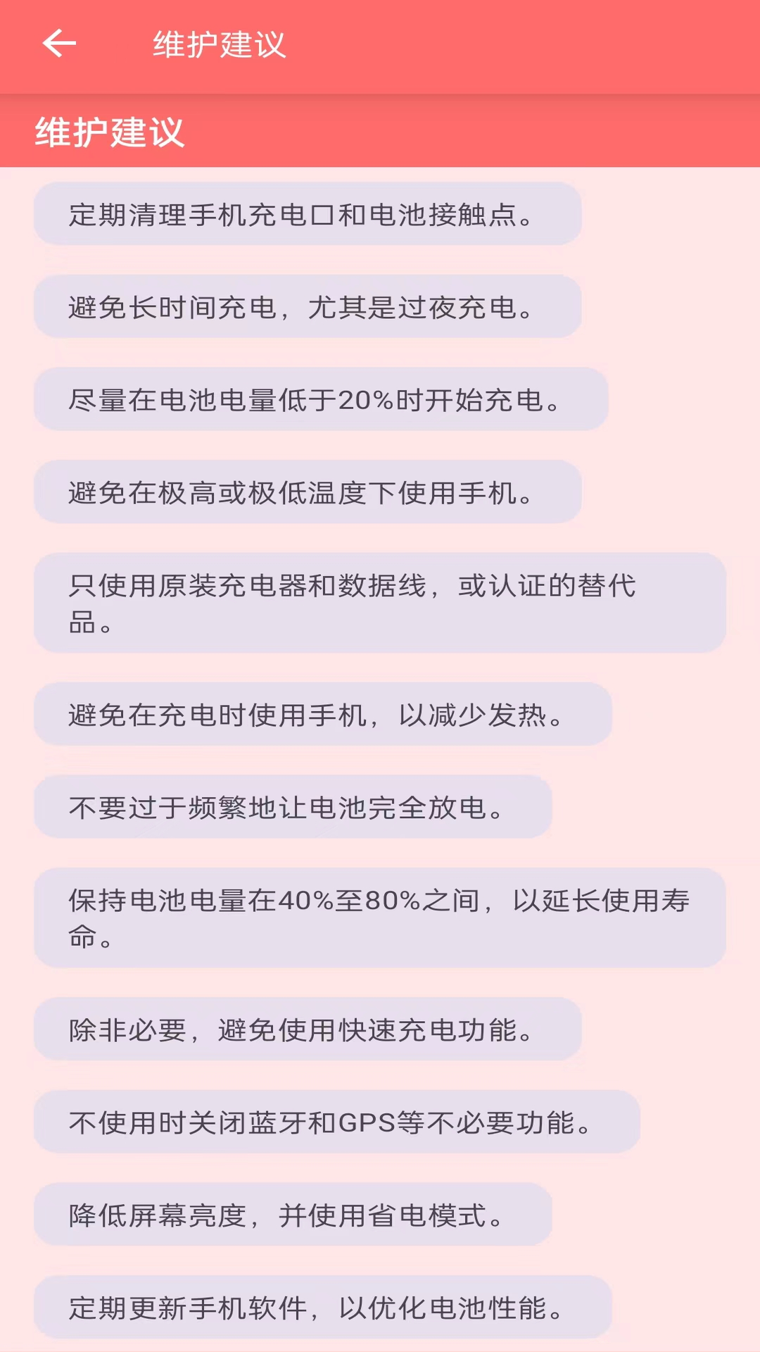 ★ 为什么选择我们? 全方位电池健康检查: 快速检测电池状态,包括电池健康、电压、温度和容量。 智能维护建议: 根据您的使用习惯提供个性化的电池维护建议。