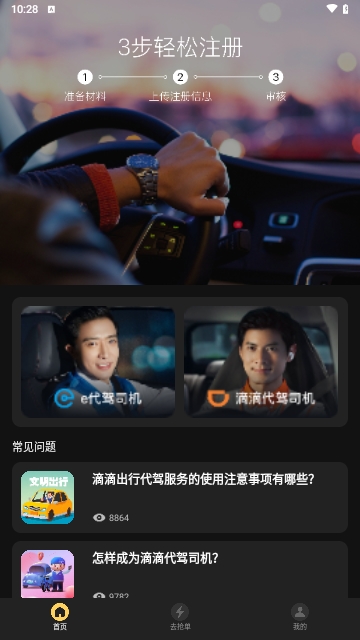 代驾司机助手APP是由合肥东晚信息科技有限公司所开发打造的一款接单工具,这款软件中为大家带来的相关接单服务是非常优秀的,可以帮助大家来快速找到优质订单,一键轻松接单赚钱,而且这里有着详细的代驾要求,轻松完成注册接单。