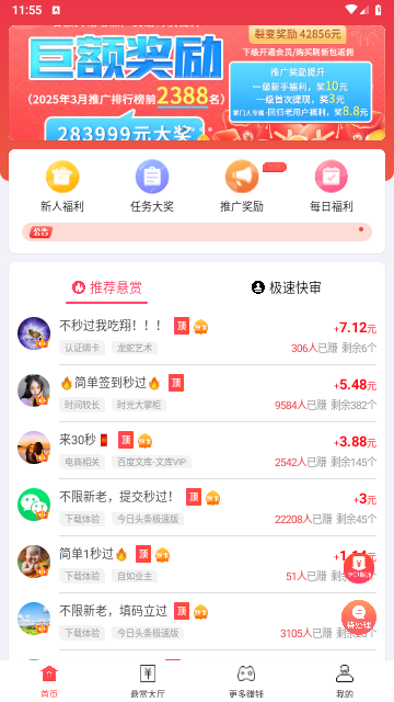 激励机制:平台创新了“悬赏+分红+等级权益”体系,用户通过完成任务可以获得即时收益,并有机会获得平台盈利的分红,激励用户深度绑定和持续活跃。