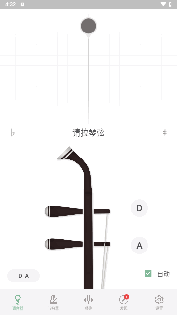 二胡调音器这款软件随便用户们在这里使用的,在这里没有任何的限制的,用户们只需要打开软件一个音一个音的试然后调整就好了,键解决二胡调音问题,智能分析弦音大小,同时判断音准,你可以根据这些数据快速校准二胡声音,非常的好用,需要的朋友们快来下载吧。