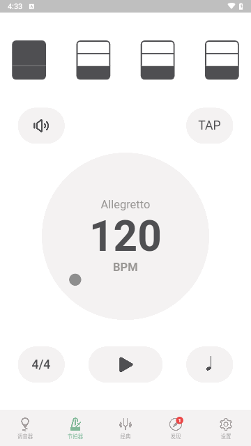3、在首页,点击中间的播放按钮,可以播放选择的节拍音源