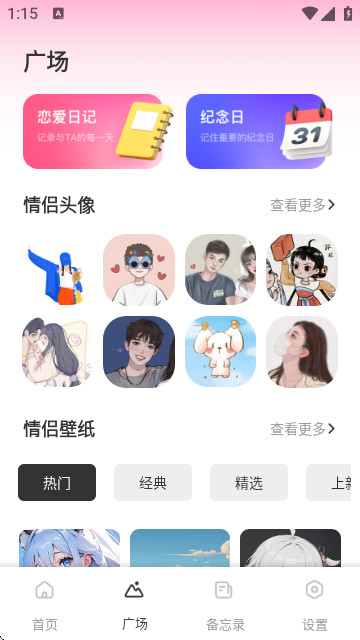 3、将各种情侣壁纸分类推荐,用户可根据壁纸分类查找喜欢的壁纸;