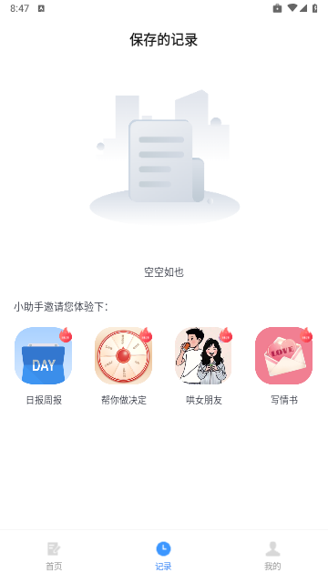 这个APP可以帮你搜索查找合适的周报、日报、简历、检讨书、情书、保证书、项目规划和宣传文案等常见报告,你只需要简单的表述几个报告的要点,即可快速查找到完整详细的周报。