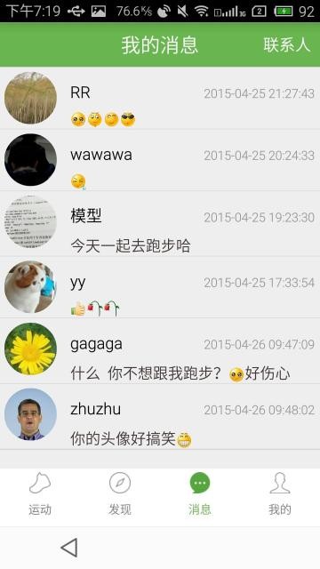 3、实时交流,系统会推送你身边的好友,你们可以聊天,交流,一起更快乐的运动