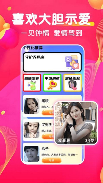 3、实时在线真人速配,涵盖性格、星座、年龄、兴趣标签等多元素精准匹配,交友体验既轻松又高效。