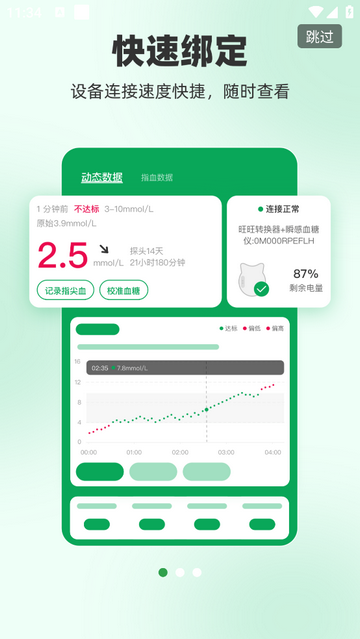 2、测量精准:借助智能设备,提供高精度的血糖数据;