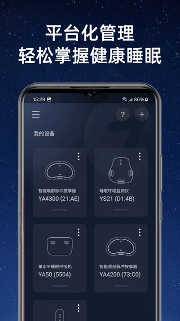 4、设备管理:支持管理所有智能睡眠设备,用户可以控制设备的使用模式和开关。