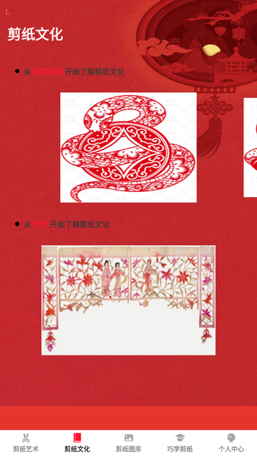 2、进入到剪纸文化页面中可以查看了解传统的剪纸文化知识;