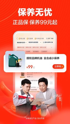 买小保养送洗车或加油,轮胎新人专享价,新人车品9.9元起邀请新人好友下单,更可得1,000元油卡。