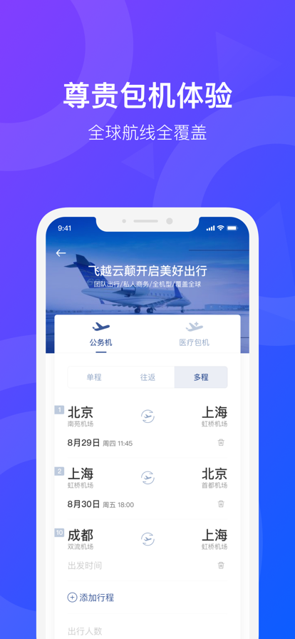一款专为高端商务人士而打造的航空app,用户在这里可以购买各大航空之旅的机票,并且还有专属的包机旅游也可以在这里来进行