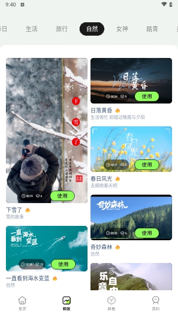 用户也可以选择喜欢的视频相册模版来简单的套用,导入视频素材来快捷制作视频。
