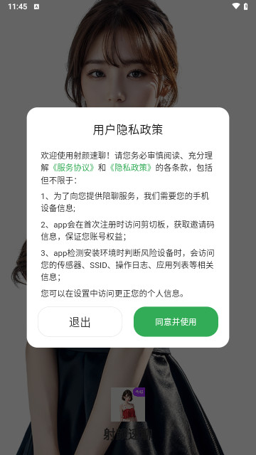 射颜速聊App这款交友服务软件绝对能够让用户们找到自己喜欢的人,在这里放心的进行手机交友功能绝对的能够让用户们体验到最好的交友,在这里拥有全新的缘分匹配社交方式,轻松就可以在线匹配到有缘人,享受更多酷炫热恋交互,体验更多真心实意同城约会,需要的朋友们快来下载吧。