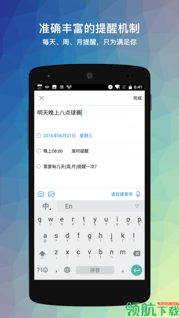 2、无任何形式广告,时间推算功能很实用,对着麦克说句话就可以建提醒。