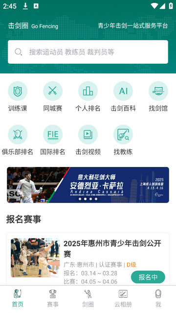 2、丰富赛事资源:平台提供丰富的击剑赛事,确保用户有充足的参赛机会。