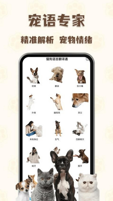 1、随时在线翻译宠物的叫声,了解宠物情绪变化。